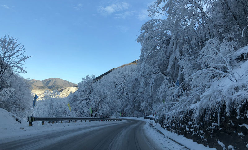 雪对于出身北方的我来说,从小到大看过玩过,印象中雪景能表达出的是那接触人间的烟火气。当驱车从神龙架山脚至雪场后,雪景却是那么恢弘大气,无比震撼,像一幅唯美图画,洁净无瑕,更像是一处不识人间烟火的仙境,此景只应天上来,人间哪得几回闻。